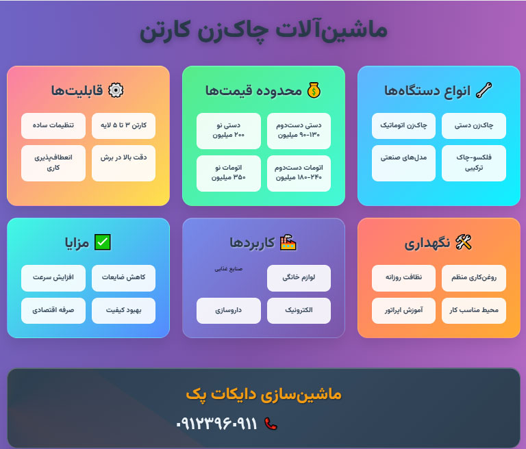 قیمت ماشین آلات چاک زن کارتن
